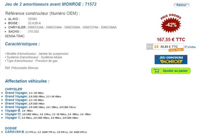 Regardez les produits avant de commander grâce à voiravantdacheter, cliquez sur les liens de monroe amortisseurs pour afficher les fiches produits des boutiques correspondantes.